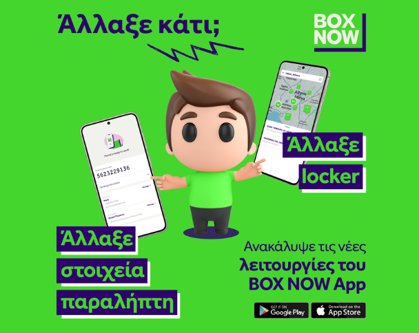 Δε σε βολεύει το locker παραλαβής; Πλέον, έχεις τη δυνατότητα να το αλλάξεις μέσω του BOX NOW app! (μία φορά ανά δέμα)